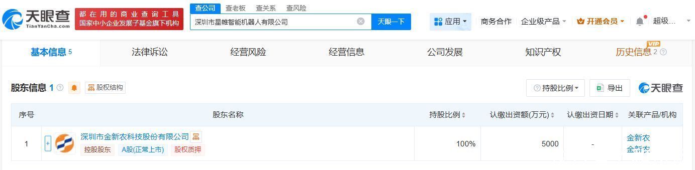 天眼查App显示证券配资开户,近日,深圳市星帷智能机器人有限公司成立,法定代表人为李哲,注册资本5000万人民币,经营范围为以自有资金从事投资活动、智能机器人的研发、智能机器人销售。股东信息显示,该公司由金新农(002548)全资持股。