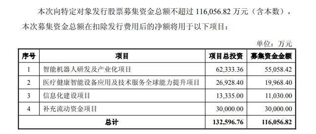 根据公告,此次定增将重点投向智能机器人研发及产业化、医疗健康智能设备应用及技术服务全球能力提升、信息化建设及补充流动资金四大方向,以应对具身智能机器人行业爆发机遇,同时推动医疗装备升级与全球化业务协同发展。
