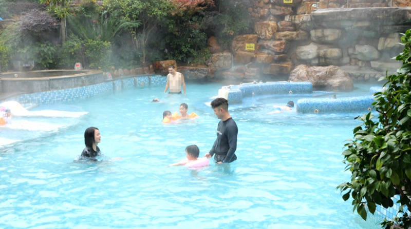 百灵温泉酒店温泉区领班杨飞:“降温以来,我们百灵温泉的接待人数显著上升。目前周末单日接待人数超过400人。入冬以来,带着小朋友和家中长辈泡温泉的家庭更多。特别是我们儿童水寨和苗药养生区,特别受大家的欢迎。”